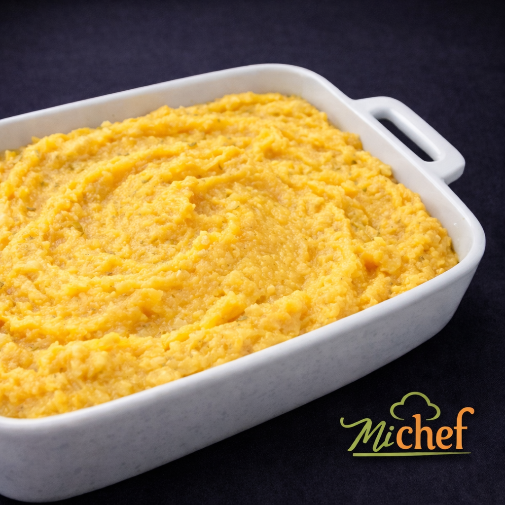 Purê de banana da terra preparado artesanalmente, com textura cremosa e sabor naturalmente adocicado, respeitando o ponto ideal do ingrediente. Produzido sem excessos, valorizando a banana da terra como protagonista, resultando em um acompanhamento equilibrado, reconfortante e cheio de personalidade.